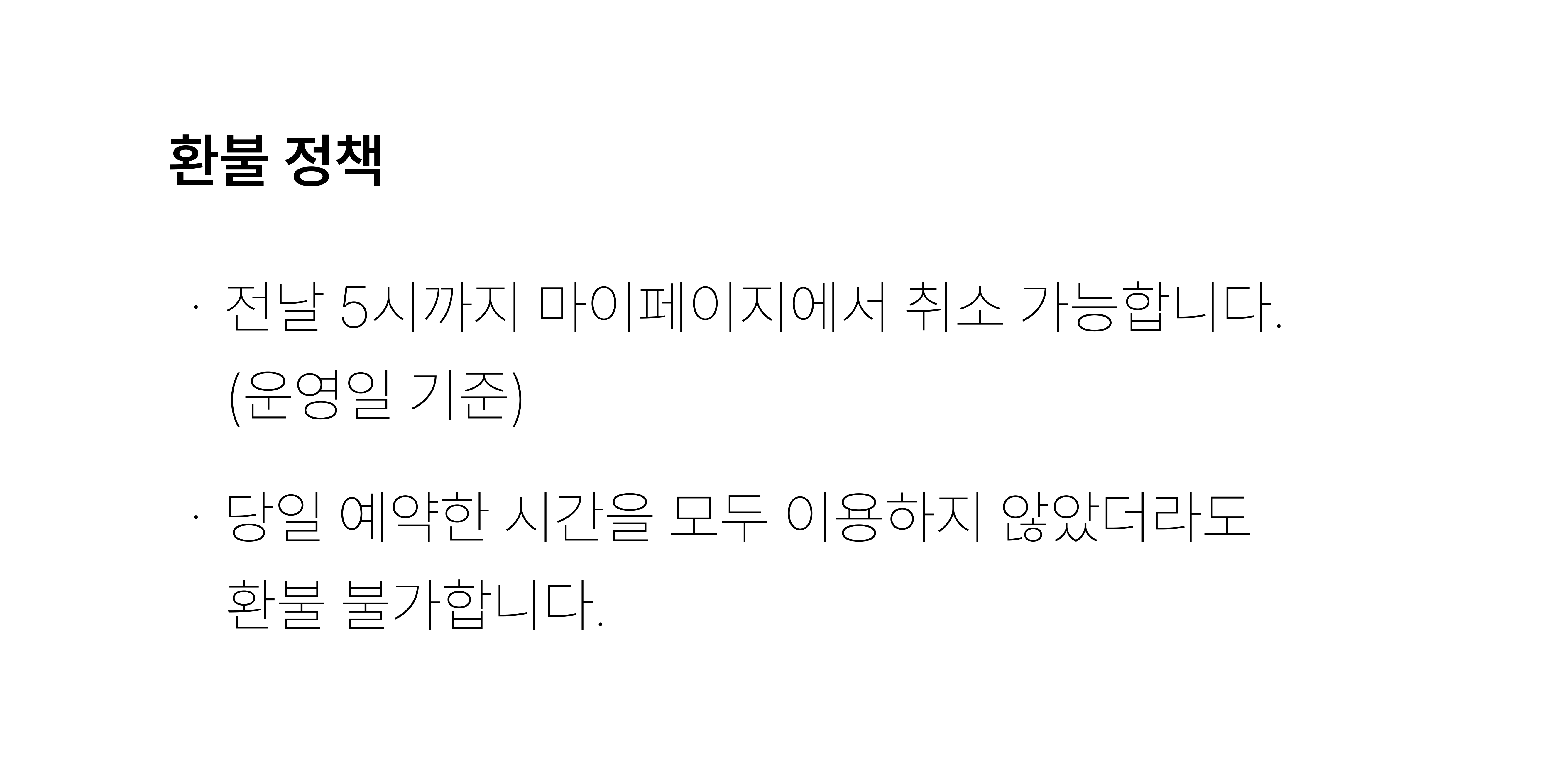 ・ 당일 예약한 시간을 모두 이용하지 않았더라도 환불 불가합니다.