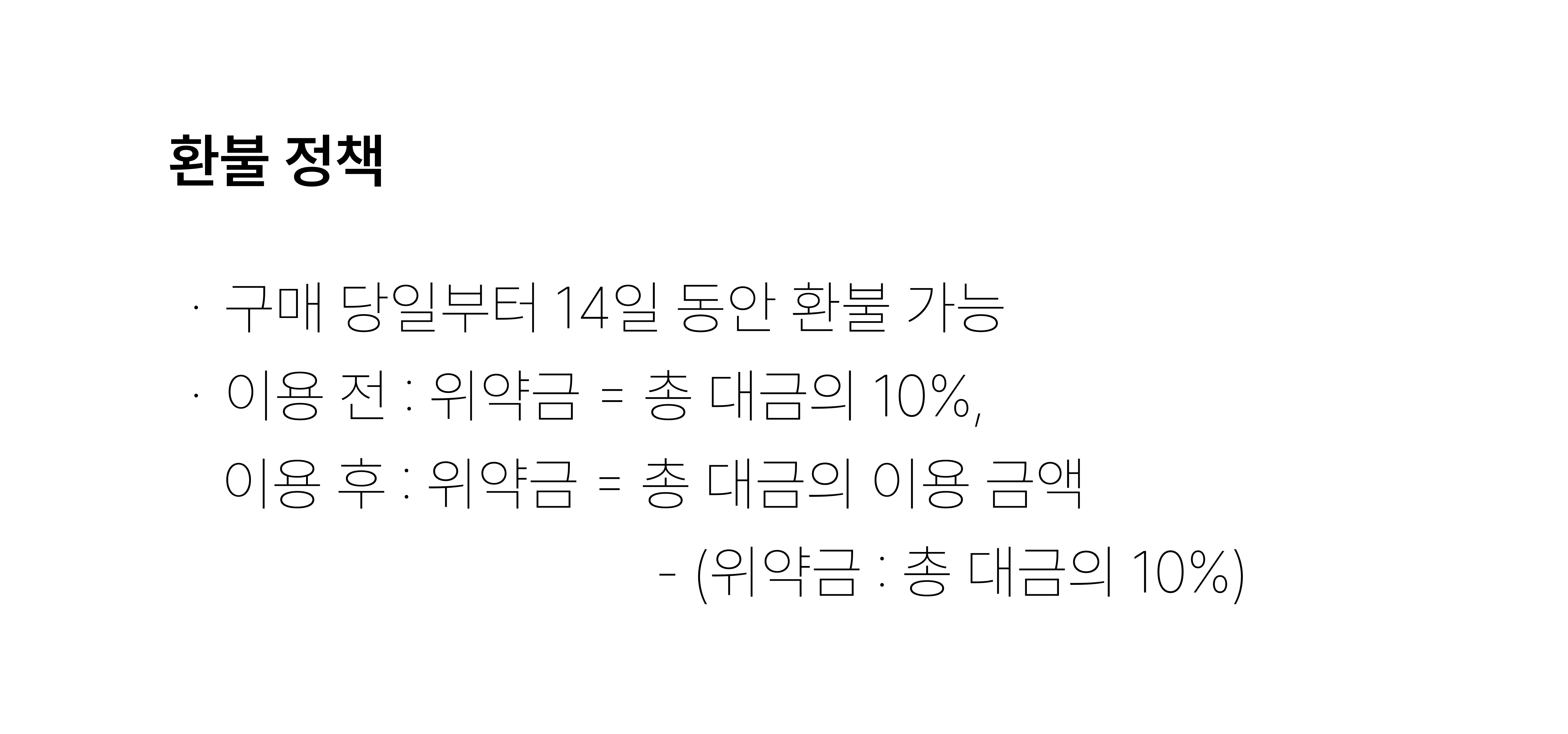 ・ 이용 전 : 위약금 = 총 대금의 10%,