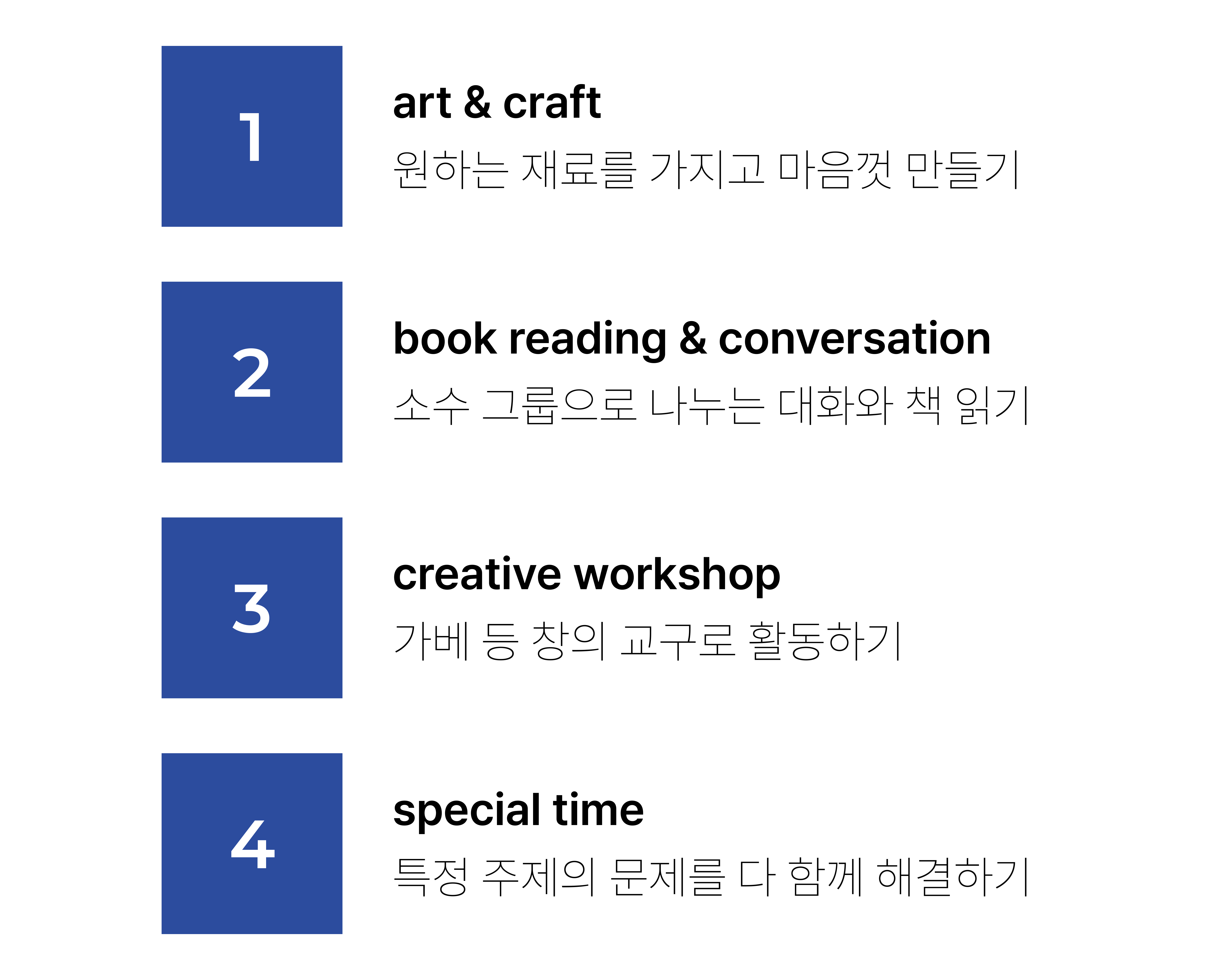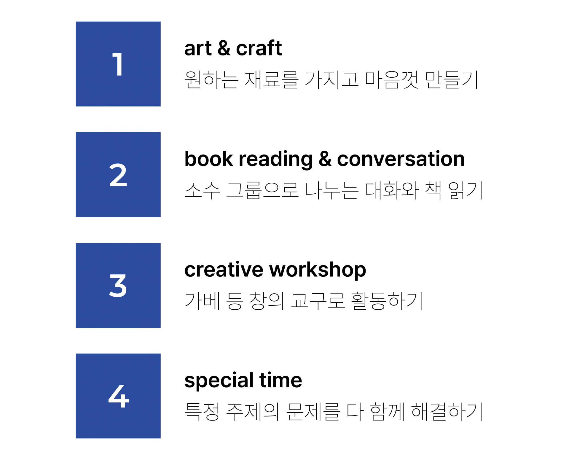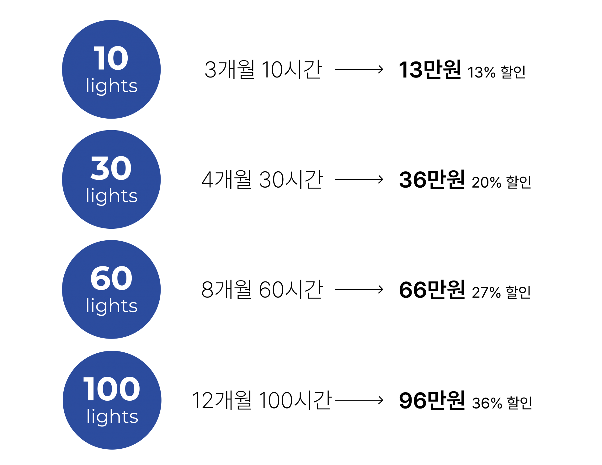 – 각 멤버십 별로 제공되는 lights (시간/회) 내, 아트 앤 크래프트 창의 워크숍을 할인된 가격으로 결제하실 수 있습니다.