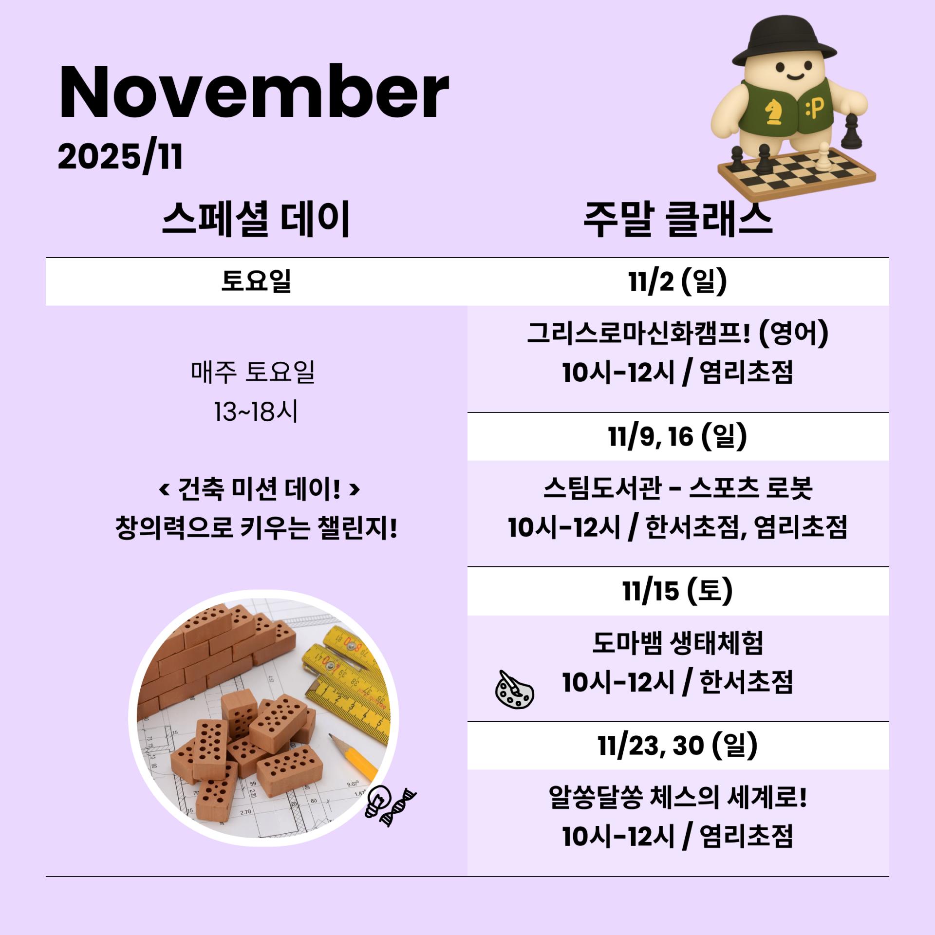 🏆 11/23,30(일) 10시-12시 생각하는 힘을 키우는 체스! - 염리초점