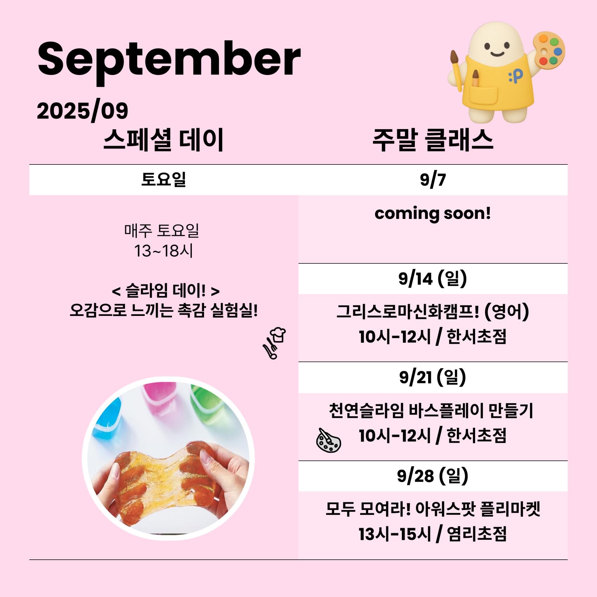 🛀 9/21(일) [10시-11시 30분] 천연슬라임 바쓰플레이 - 한서초점